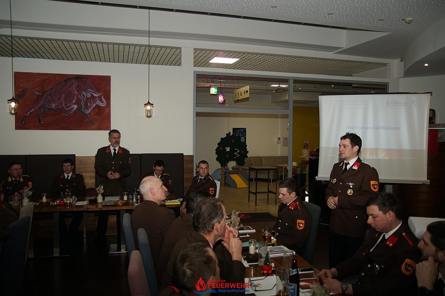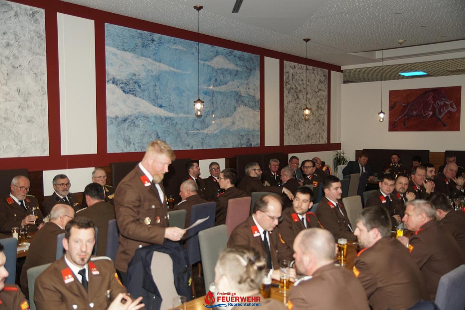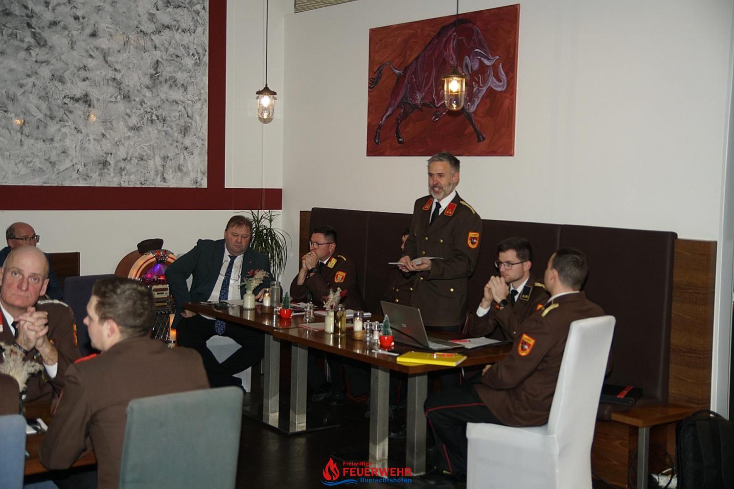 Eine besondere Mitgliederversammlung wurde am 9. Jänner abgehalten. Alle 5 Jahre werden der Kommandant und Kommandantstellvertreter von den wahlberechtigten Feuerwehrmitgliedern gewählt. Heuer ist wieder ein Feuerwehr – Wahljahr. Im Steakhouse Leonhofen konnten die Feuerwehrmitglieder und Ehrengäste interessante Berichte des Kommandos und der Fachchargen, sowie verschiedenste Neuigkeiten aus dem Umfeld der Feuerwehr und der Marktgemeinde Ruprechtshofen erfahren.