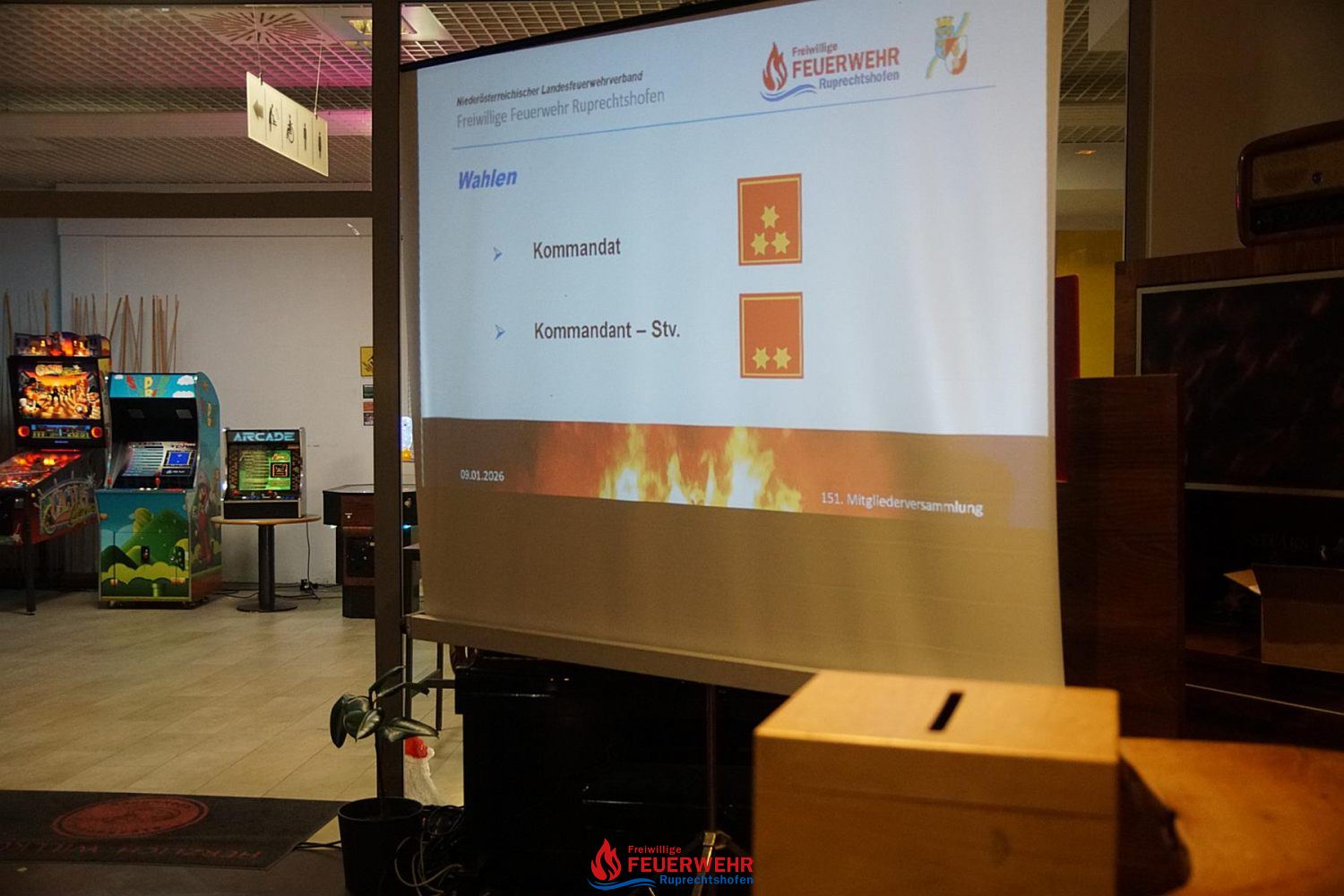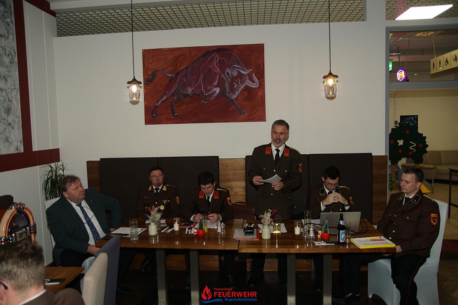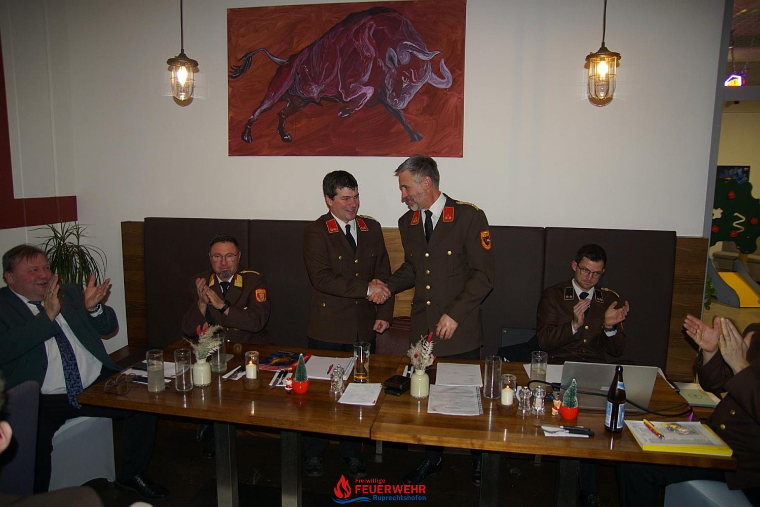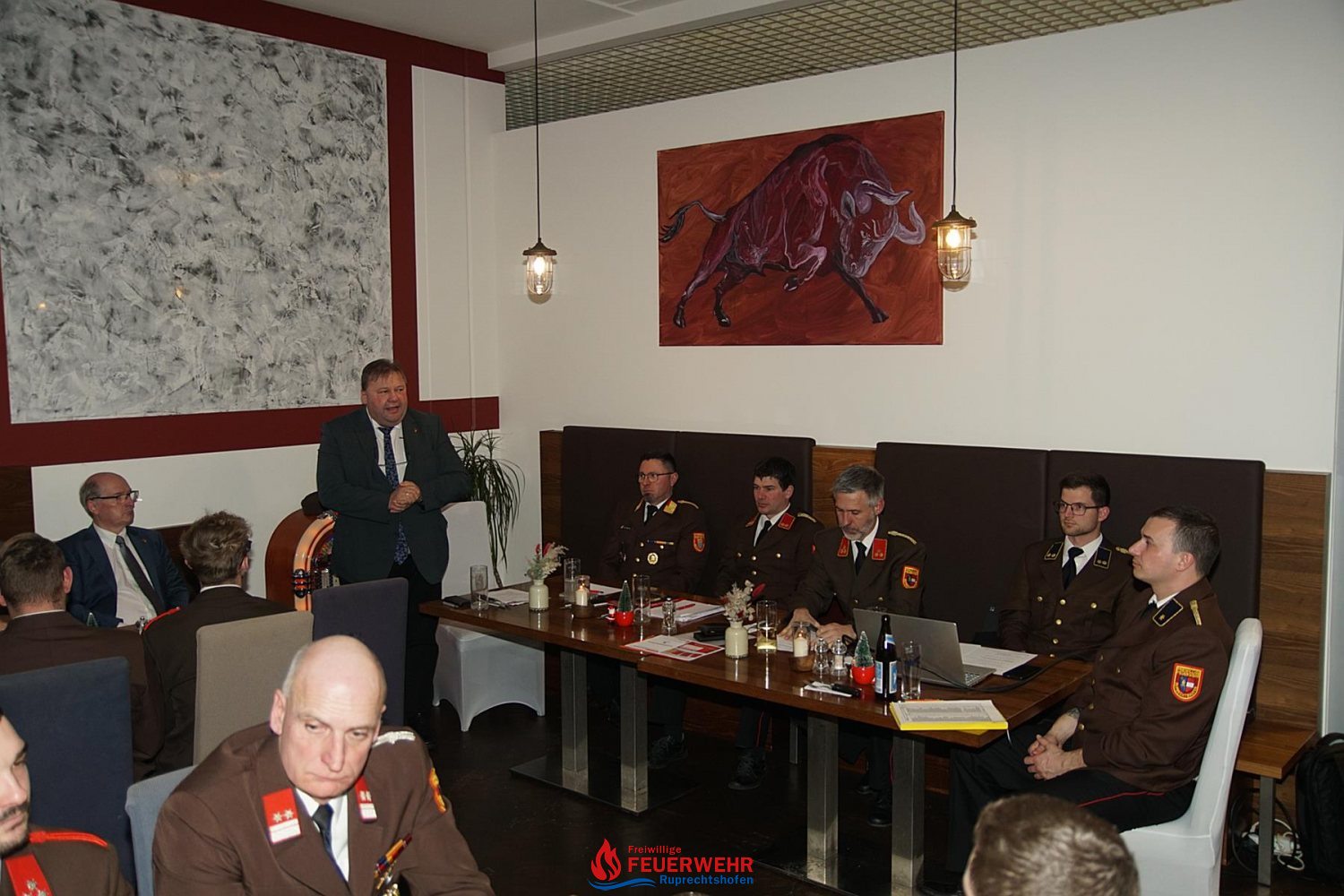 Eine besondere Mitgliederversammlung wurde am 9. Jänner abgehalten. Alle 5 Jahre werden der Kommandant und Kommandantstellvertreter von den wahlberechtigten Feuerwehrmitgliedern gewählt. Heuer ist wieder ein Feuerwehr – Wahljahr. Im Steakhouse Leonhofen konnten die Feuerwehrmitglieder und Ehrengäste interessante Berichte des Kommandos und der Fachchargen, sowie verschiedenste Neuigkeiten aus dem Umfeld der Feuerwehr und der Marktgemeinde Ruprechtshofen erfahren.