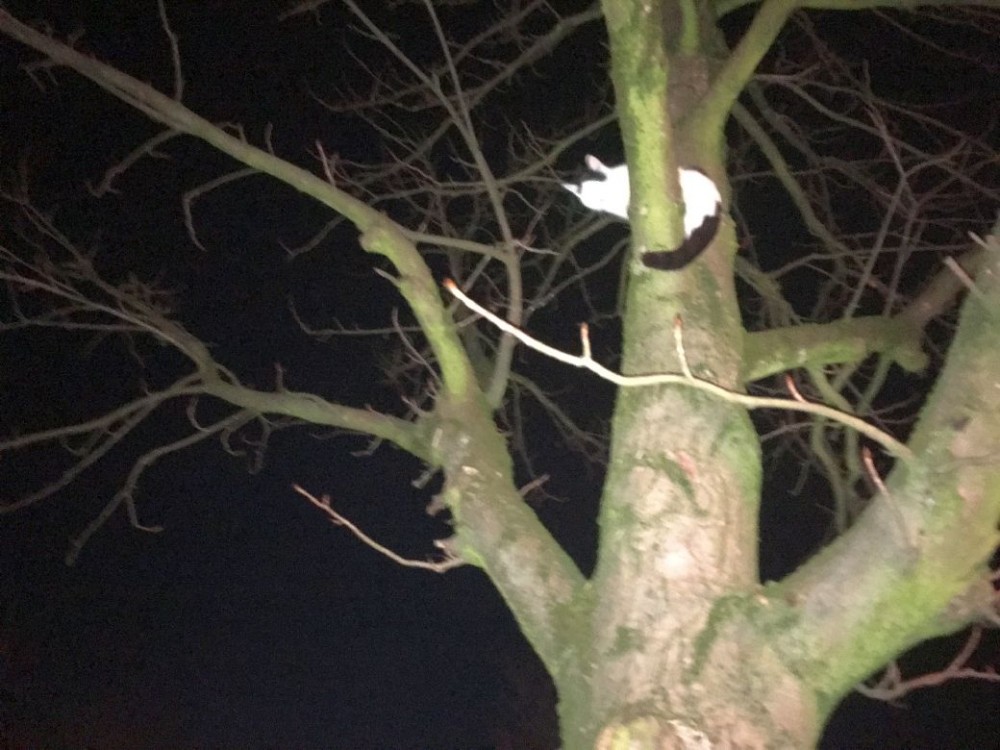 Eine Katze ist auf einen Baum in der Allee geklettert und hatte miauend auf die Rettung gehofft.