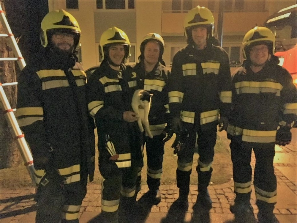 Mit 6 Mann wurde angerückt, um das Haustier aus seiner misslichen Lage zu befreien.