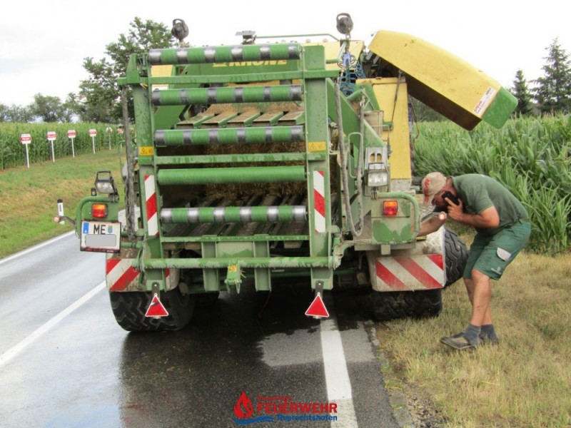 „Strohpresse auf der L105 bei Schlatten in Brandgefahr“