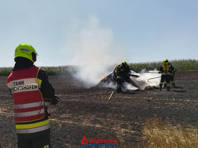 Die Besatzungen von Tank und Pumpe Ruprechtshofen kümmerten sich zeitgelich um den Flächenbrand und die brennenden Strohballen auf dem Feld.