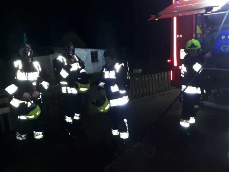 Ein Atemschutztrupp rüstete sich samt Wärmebildkamera aus, begann die Brandursache zu erkunden und überprüfte den Kamin, wo Temperaturen von ca. 160 Grad gemessen wurden.
