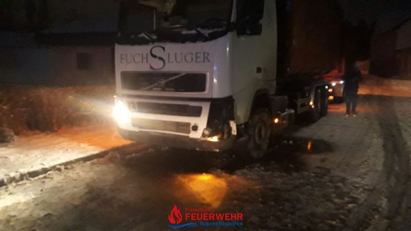 Kurz vor 6 Uhr in der Früh kam es auf der L105, der Wieselburgerstraße bei schneeglatter Fahrbahn zu einer Kollision zwischen einem PKW und einem LKW.