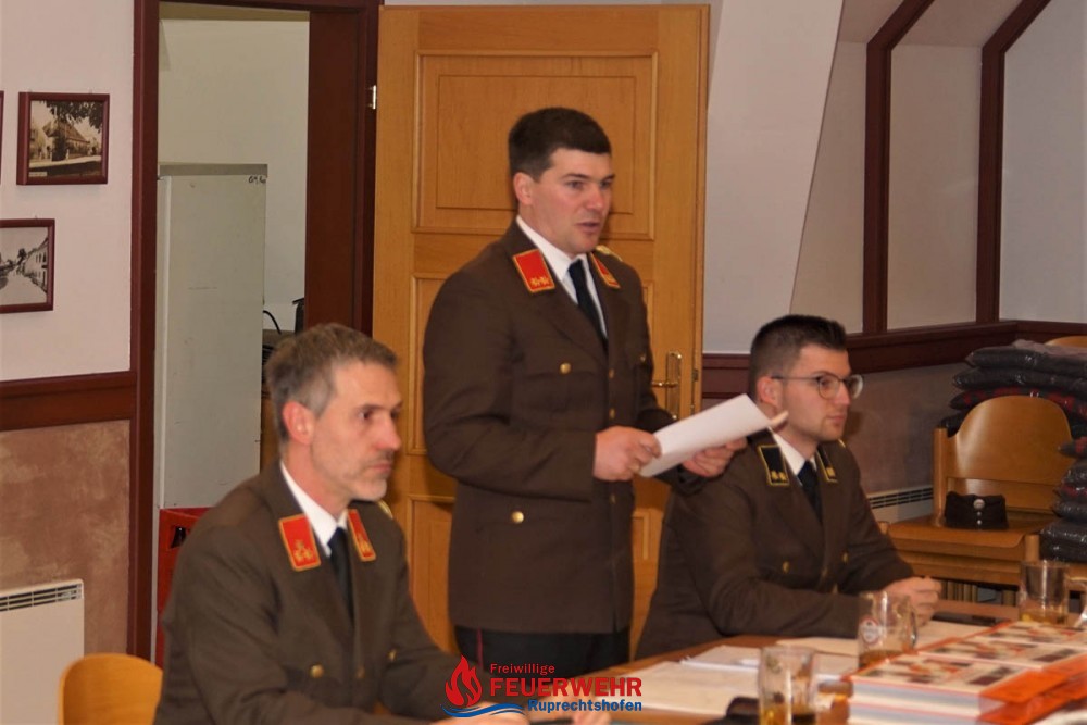 Nach dem Feststellen der Beschlussfähigkeit, Genehmigung der Tagesordnung und dem Totengedenken wurde das vorjährige Protokoll genehmigt. Der Rechnungsabschluss durch OV Jakob Steiner und der Bericht der beiden Kassenprüfer BM Florian Leichtfried und FM Daniel Freunberger wurde von den Anwesenden aufmerksam verfolgt.