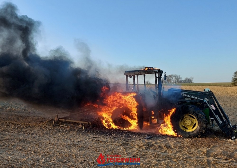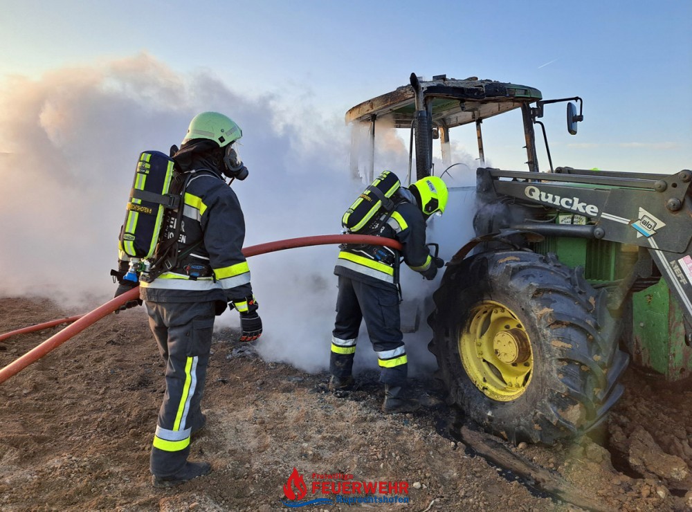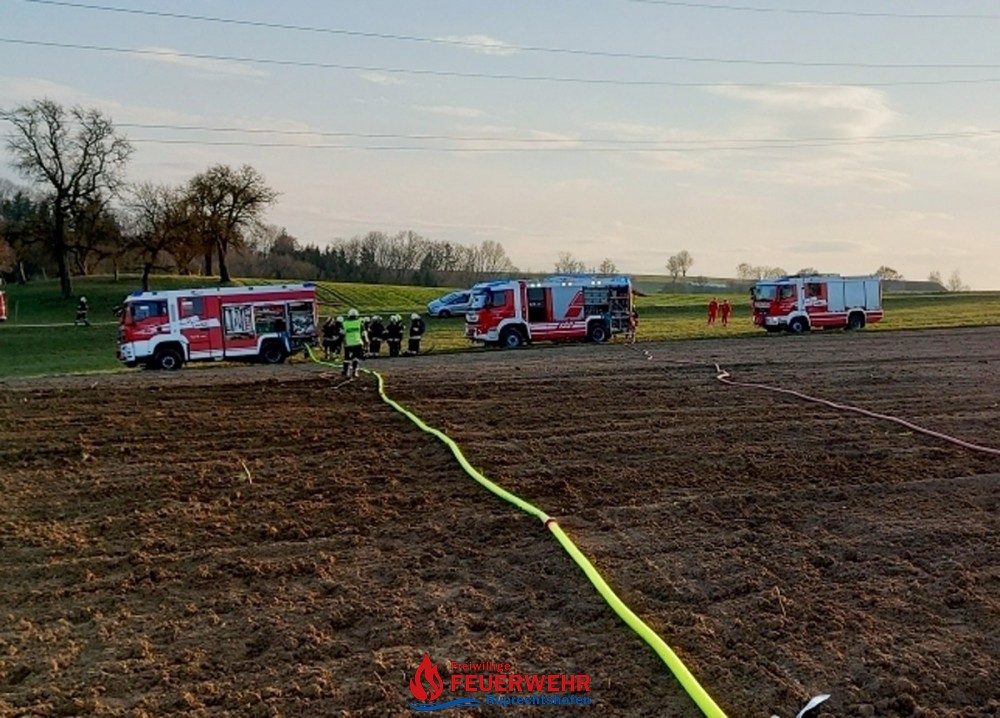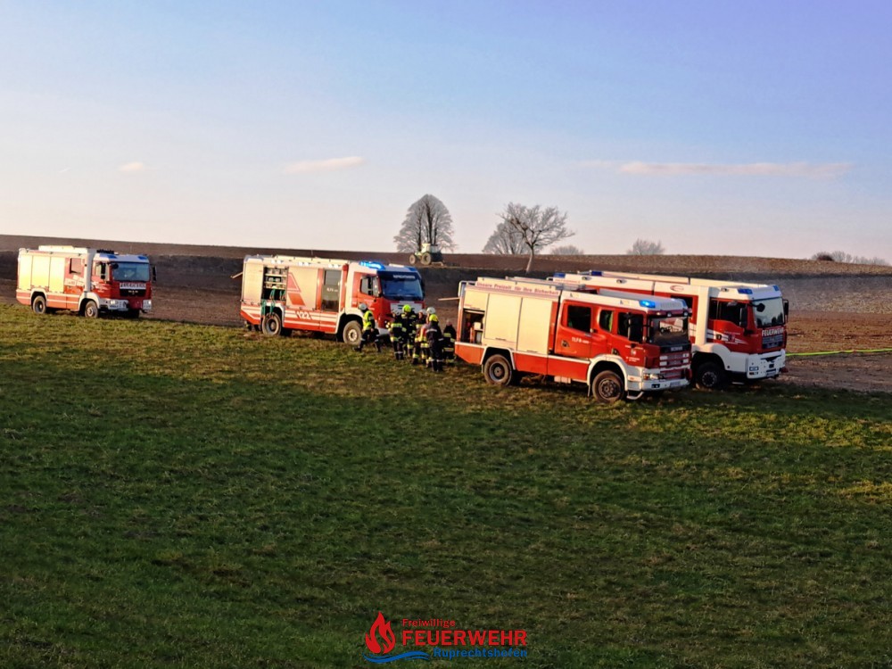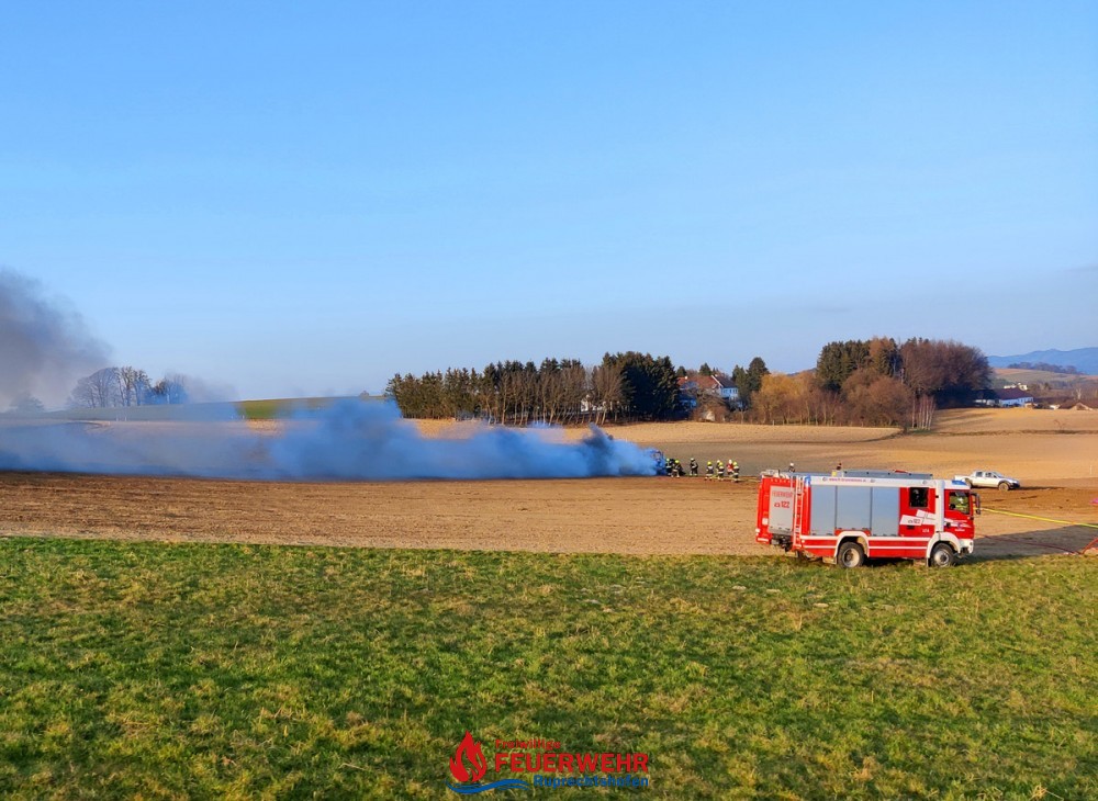 Zur Unterstützung der FF-Brunnwiesen rückten wir mit RLF2000, Pumpe und KDO mit ALA zum Einsatzort nach Brunnwiesen aus. Ein Traktor war aus ungeklärter Ursache mitten auf einem Feld in Brand geraten.