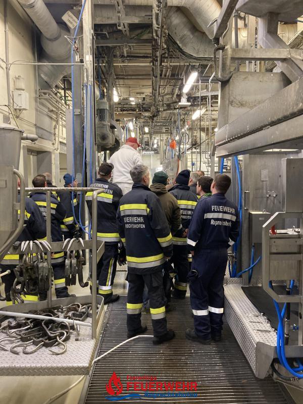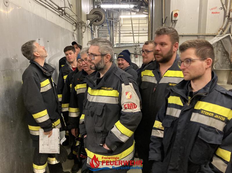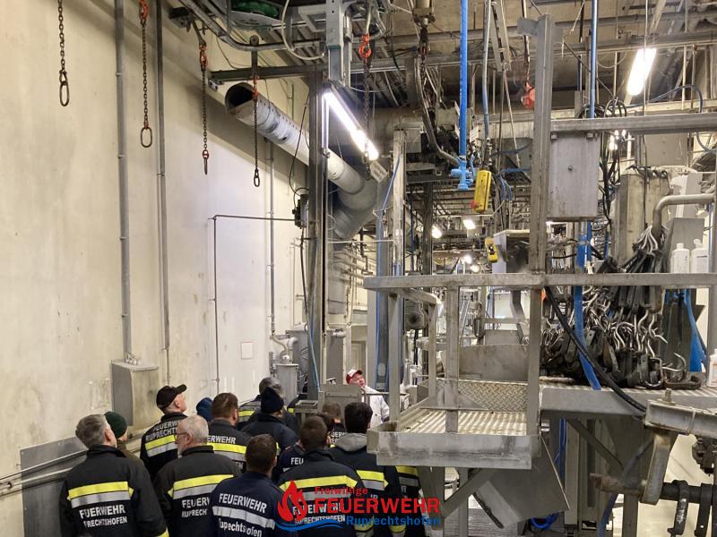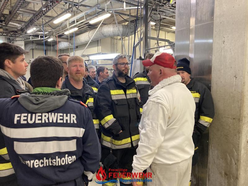 Alle Produktionsabschnitte wurden durch Betriebsleiter Bernhard Eder gezeigt und die entsprechenden Abläufe erklärt. Auch besonders auf Feuerwehrzugänge und Ausgänge im Außen- und Innenbereich ist geachtet worden.
