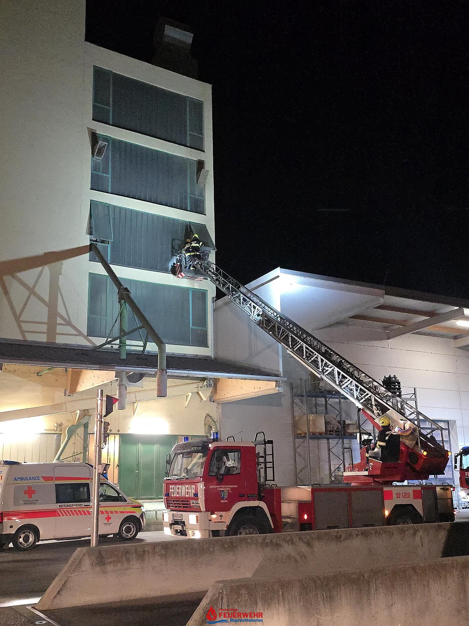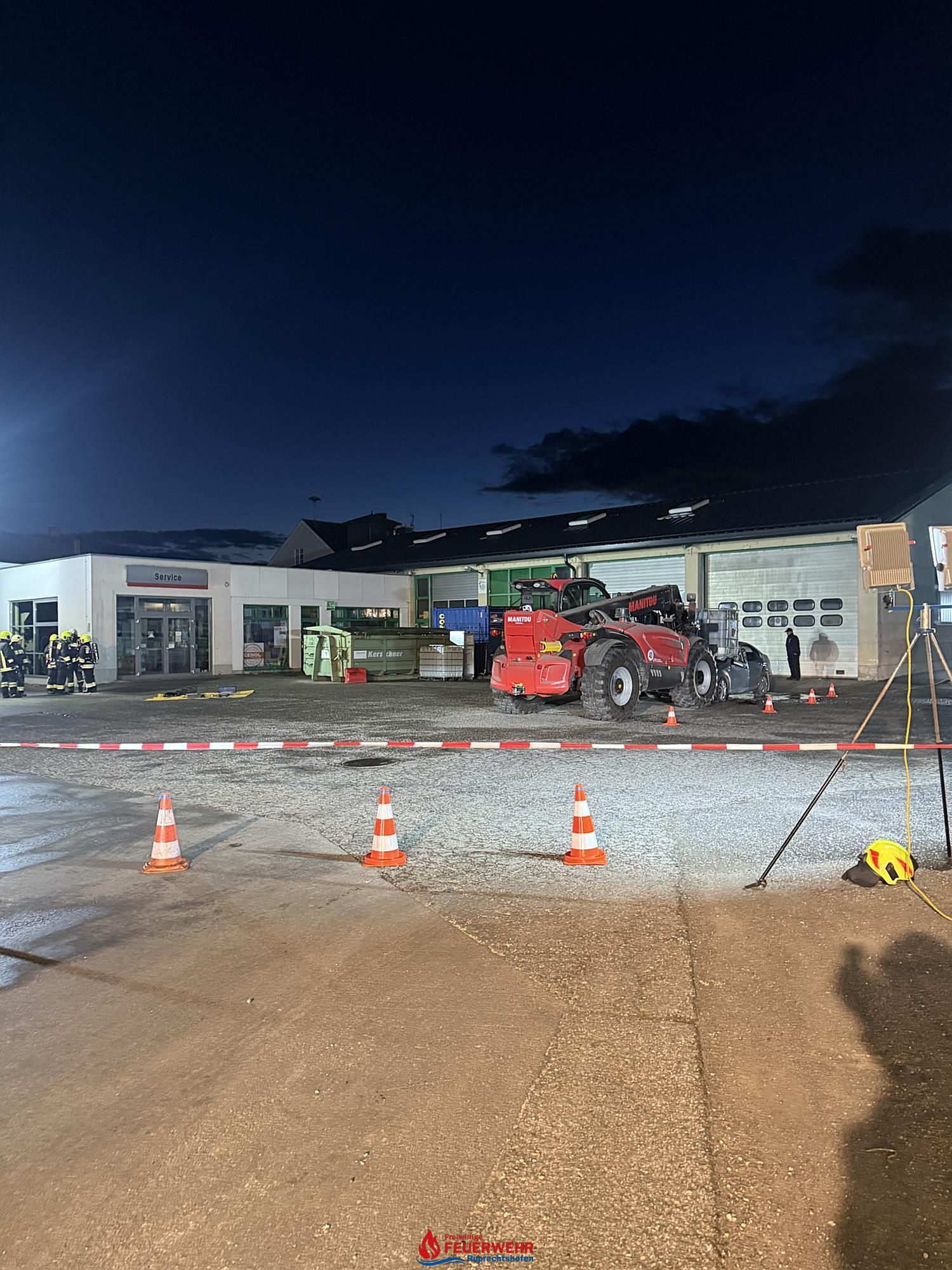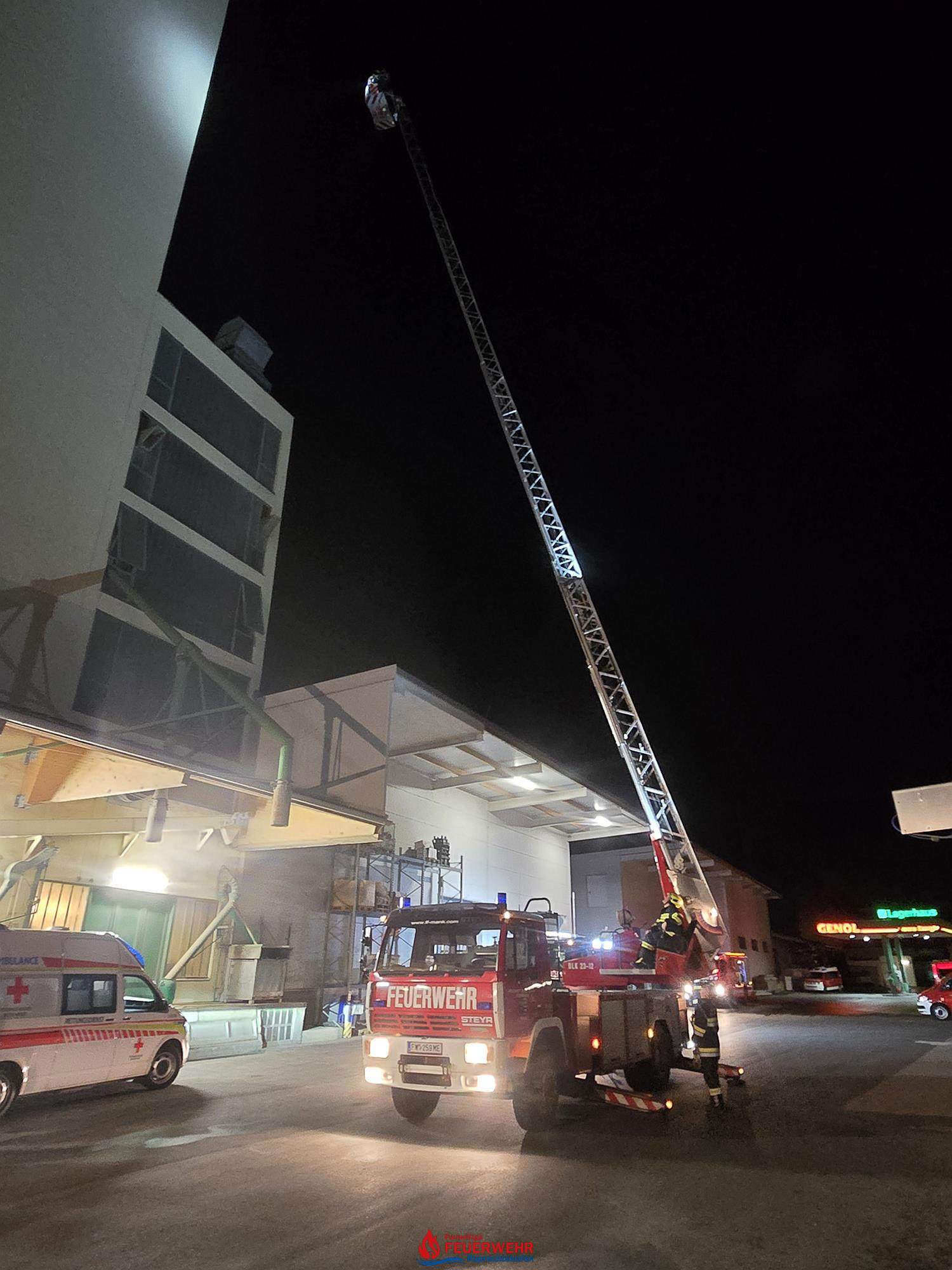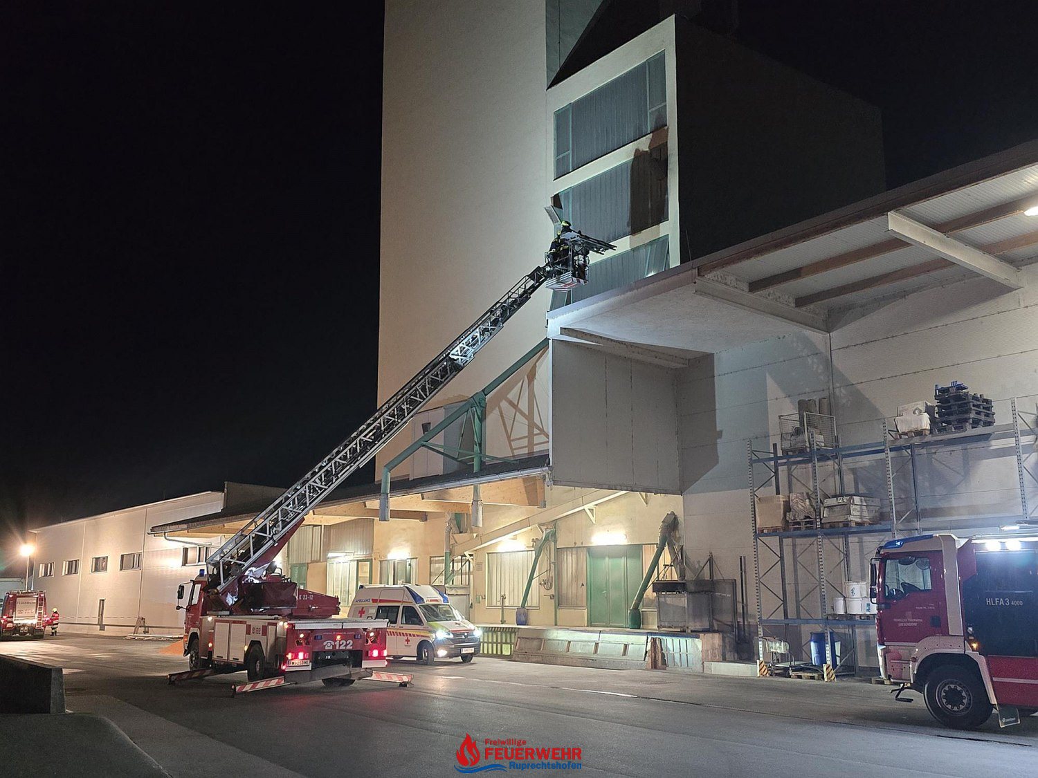• Ein Außenangriff beim Getreidesilo mit der Drehleiter der FF Mank.