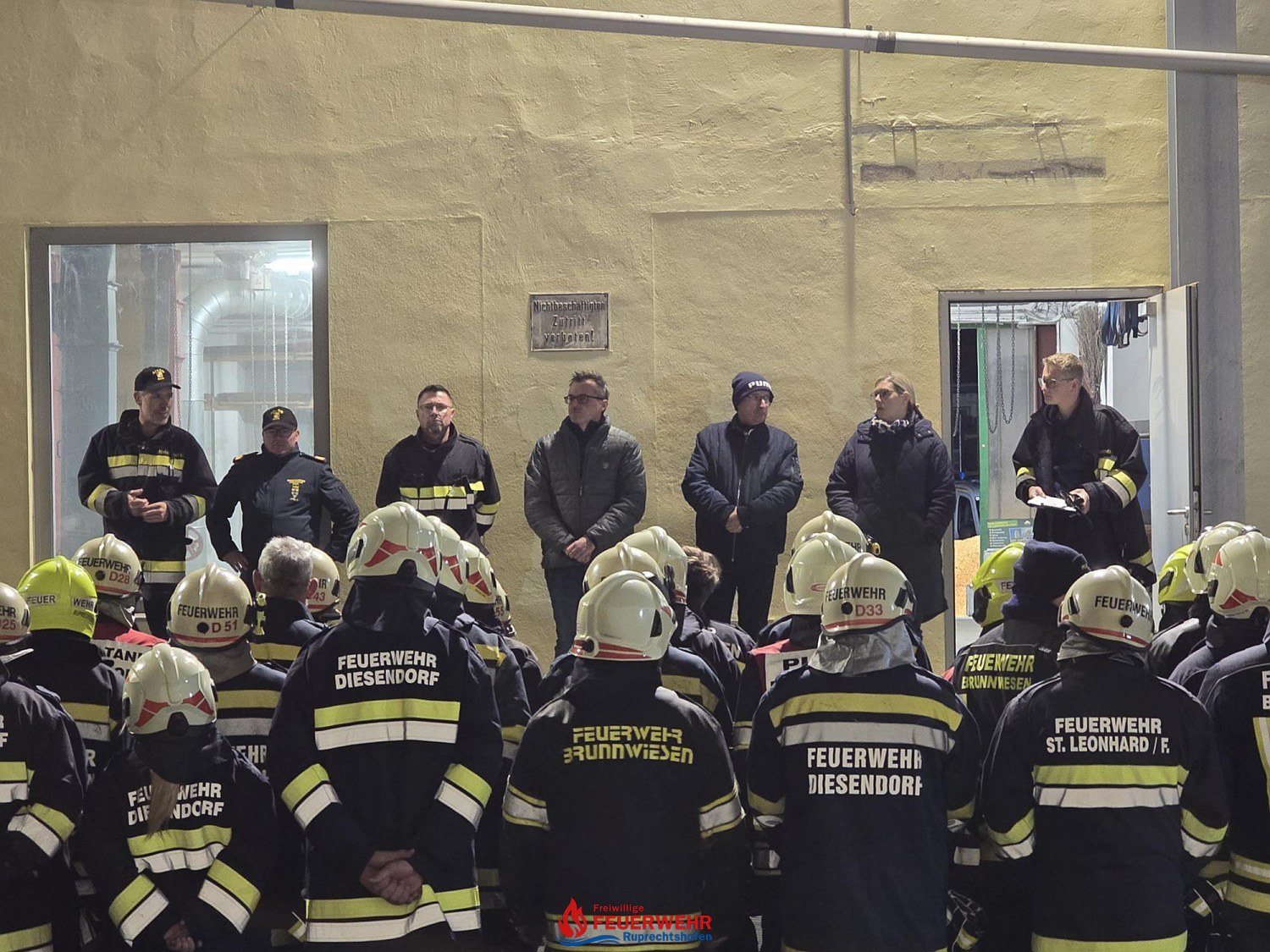 Aus organisatorischen Gründen fand heuer die Unterabschnittsübung des Unterabschnittes St. Leonhard / Forst bereits am Freitag, den 24. Oktober statt. Zu der Großübung, die von der FF St. Leonhard ausgearbeitet wurde, waren neben Ruprechtshofen, Brunnwiesen und Diesendorf, auch die Nachbarfeuerwehren Mannersdorf und Mank mit der Drehleiter eingeladen.